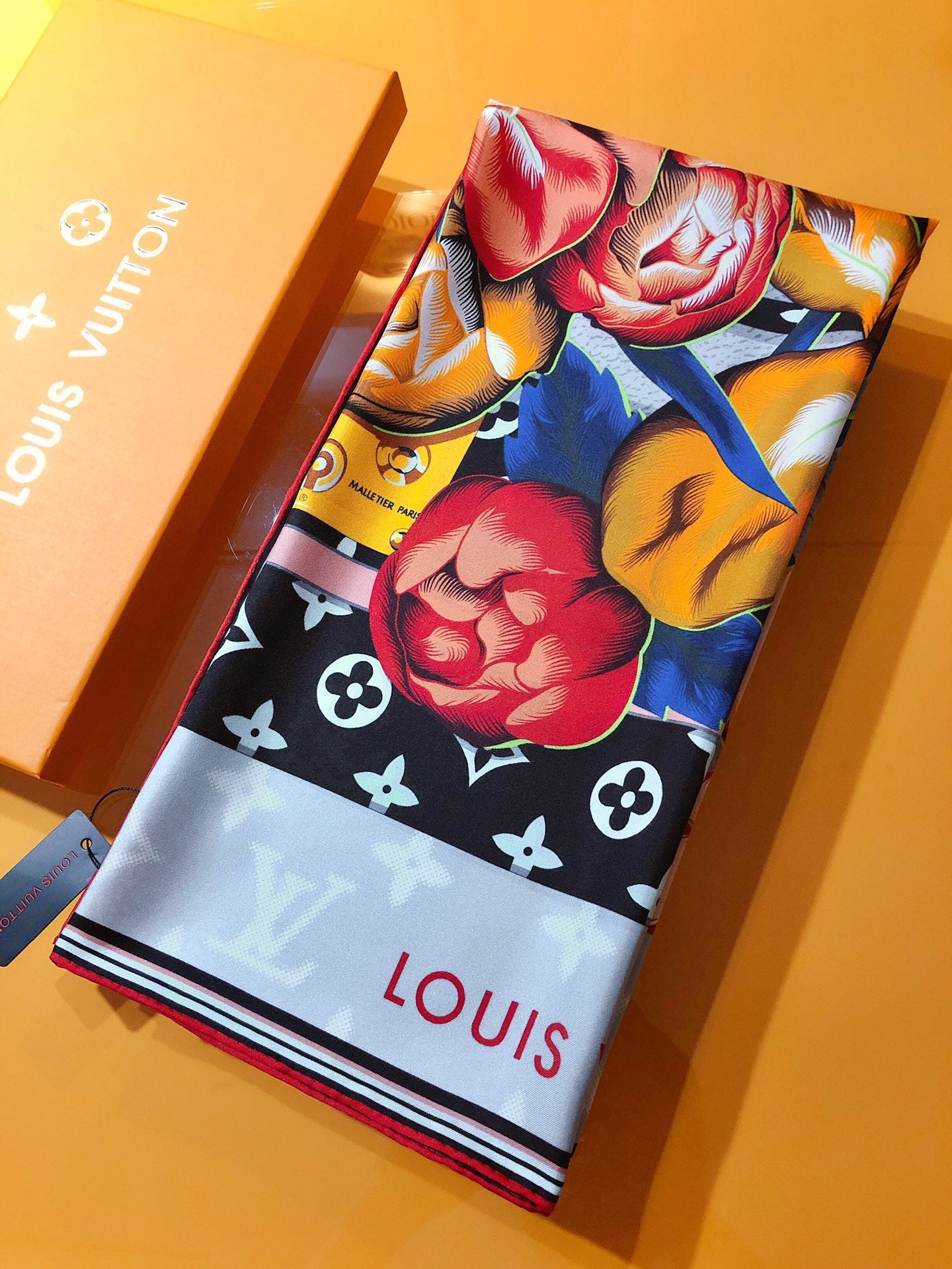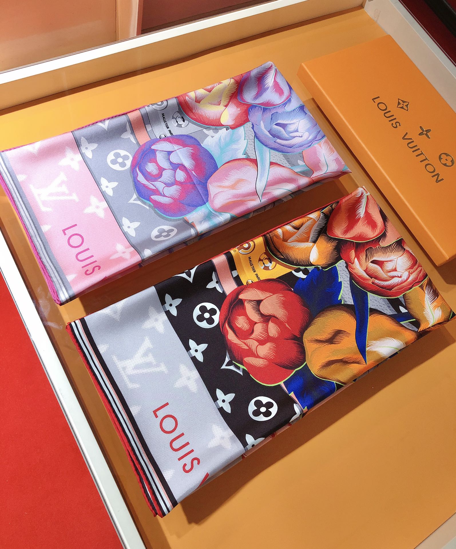- The mulberry silk scarf harks back to George and Gaston's 1910 design. featuring a full-length Monogram element to accentuate the floral pattern. with contrasting edges and hand-rolled edges.