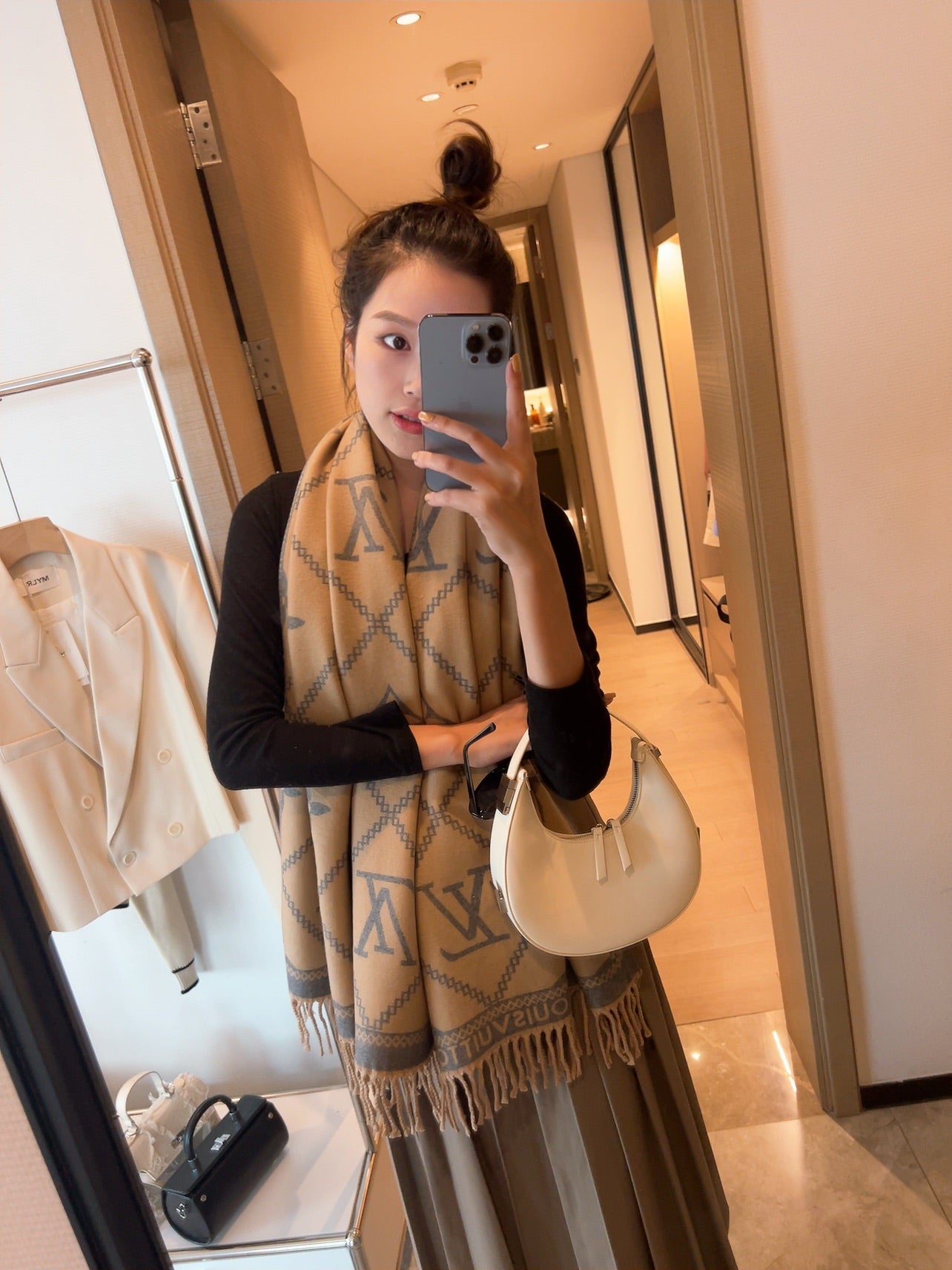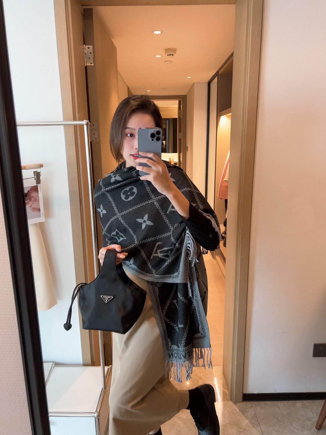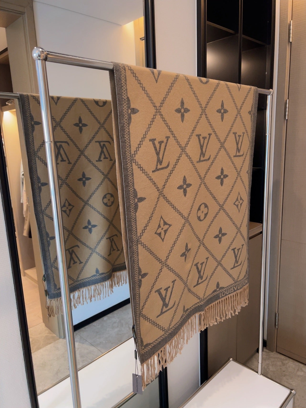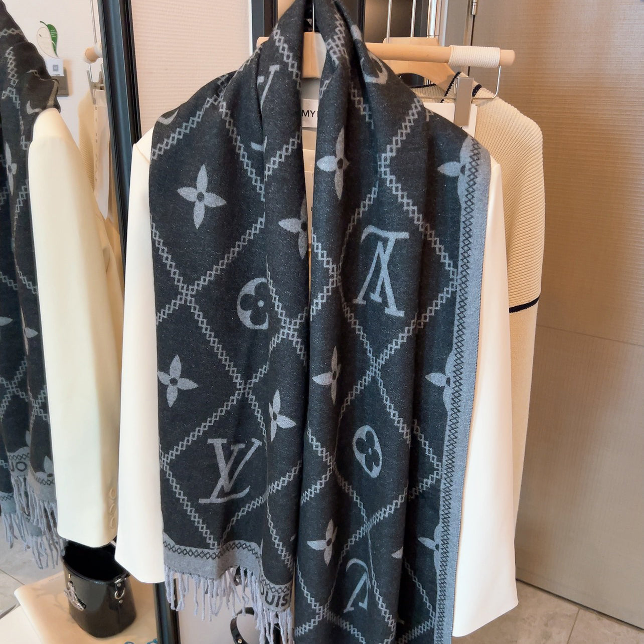 Rabbit Velvet Monogram Fringe Scarf Shawl