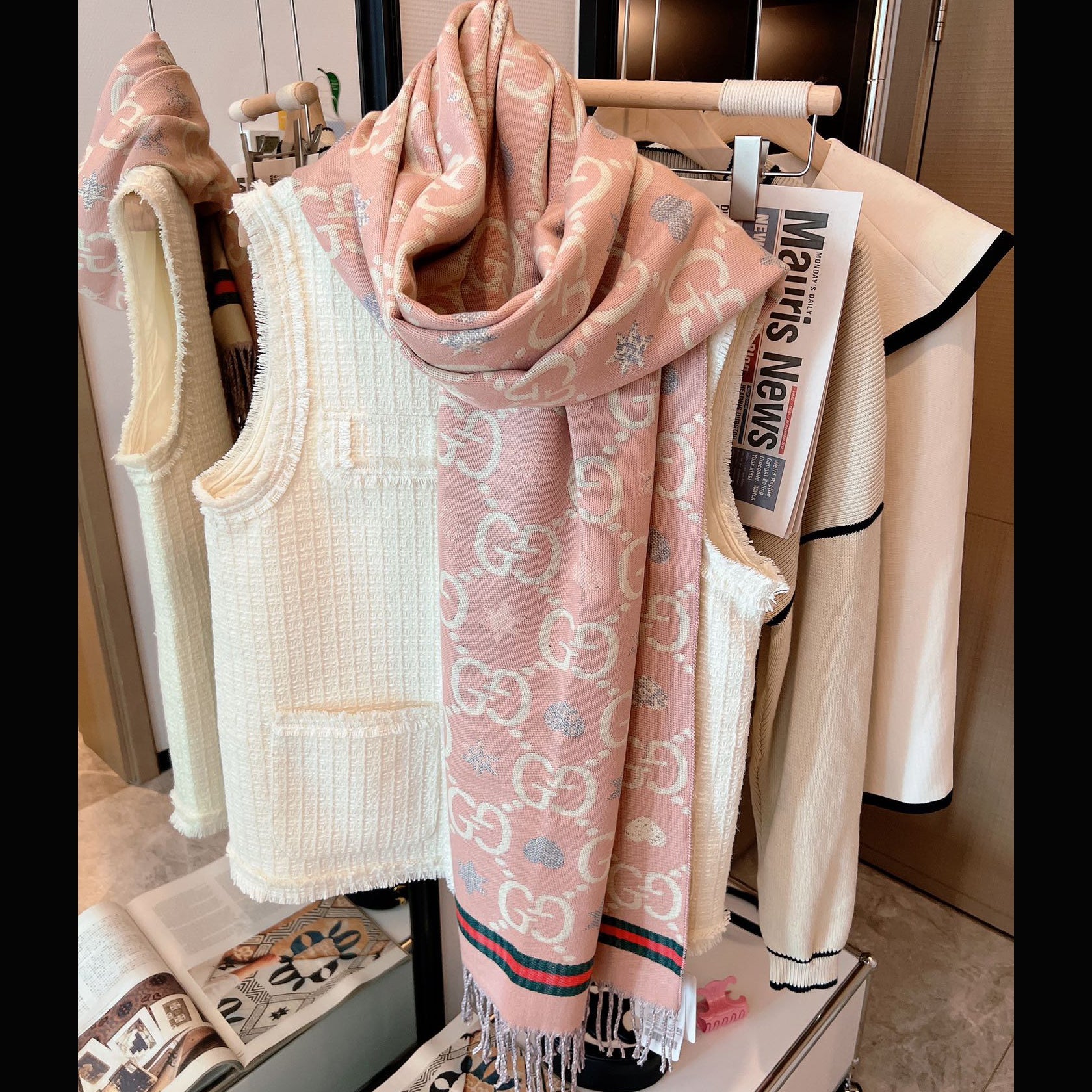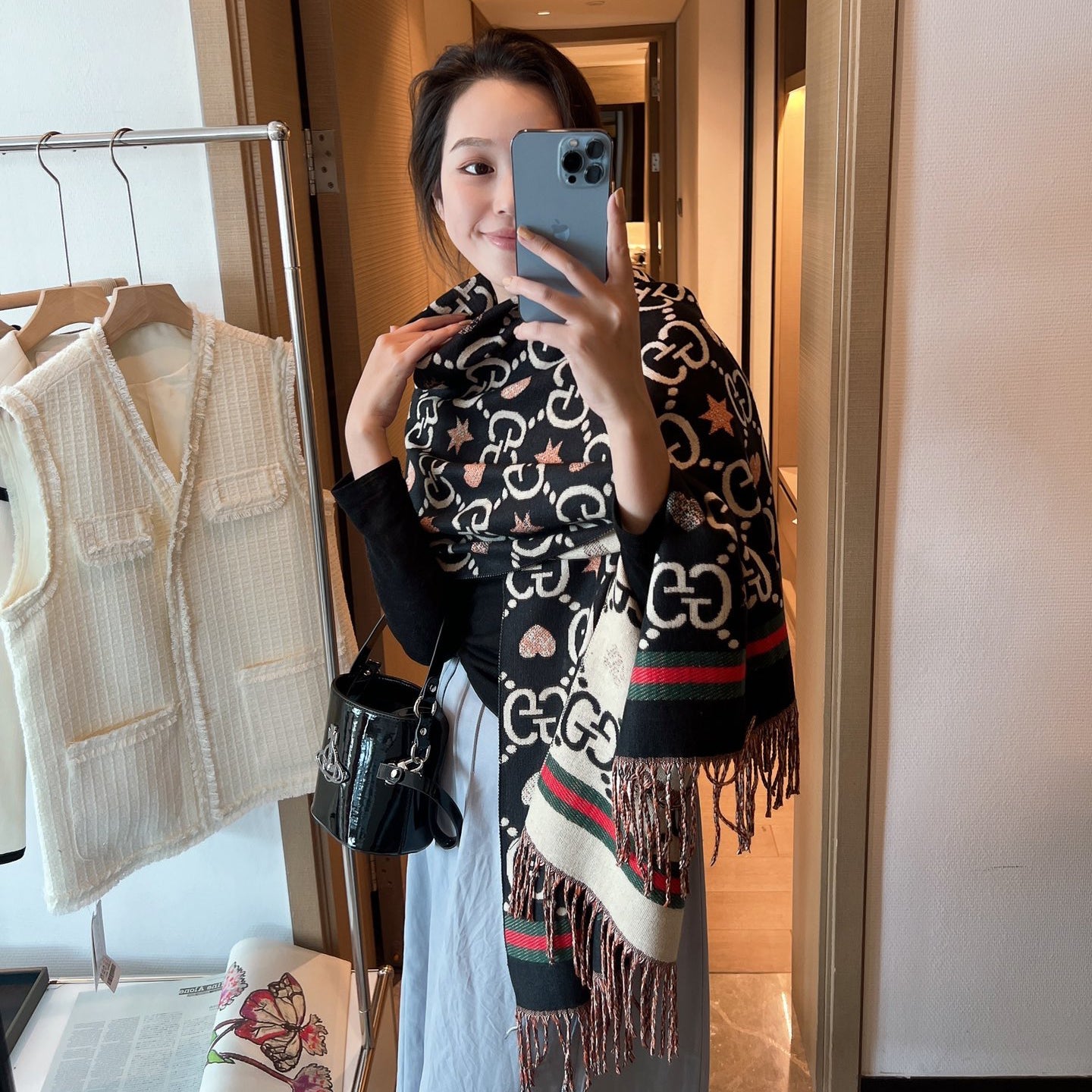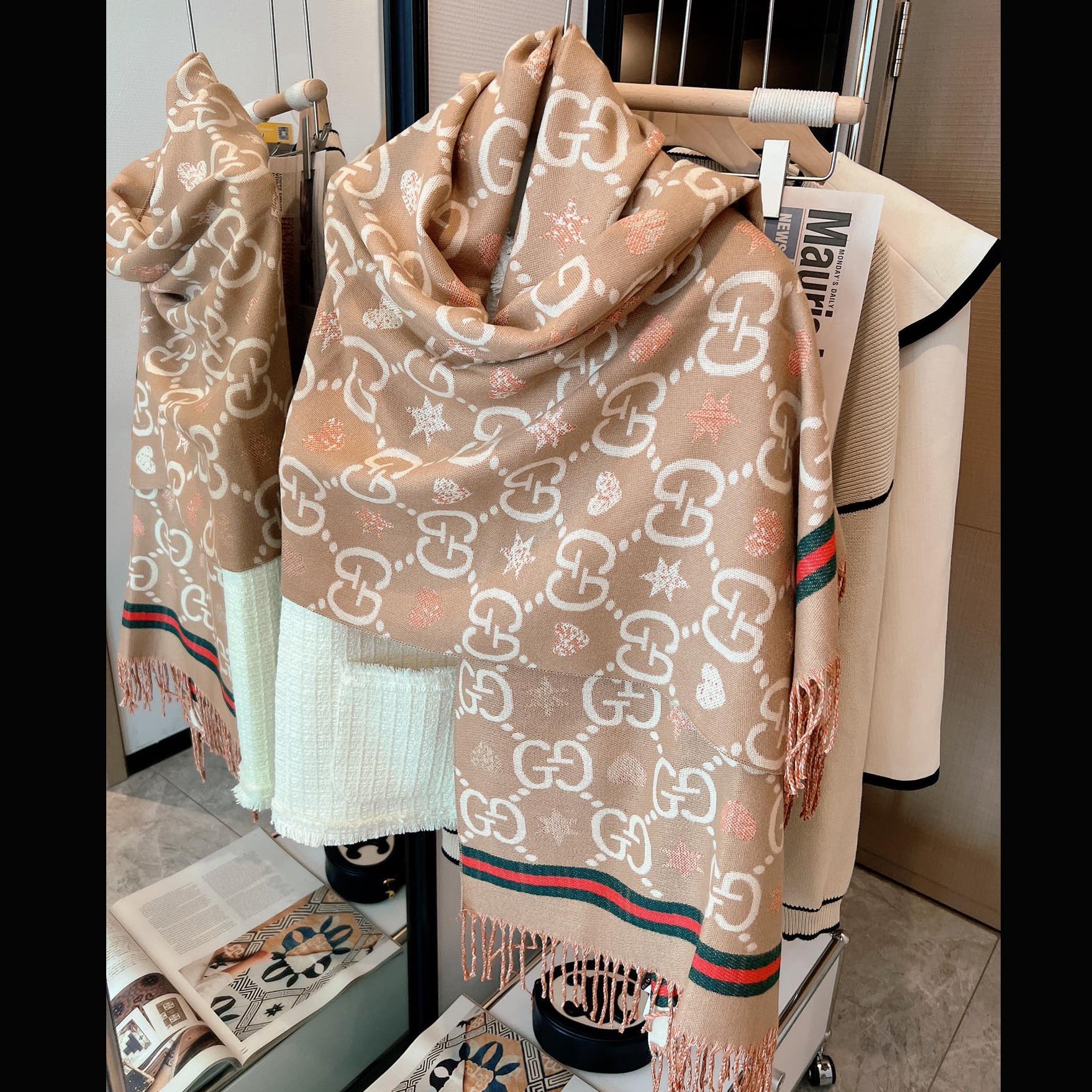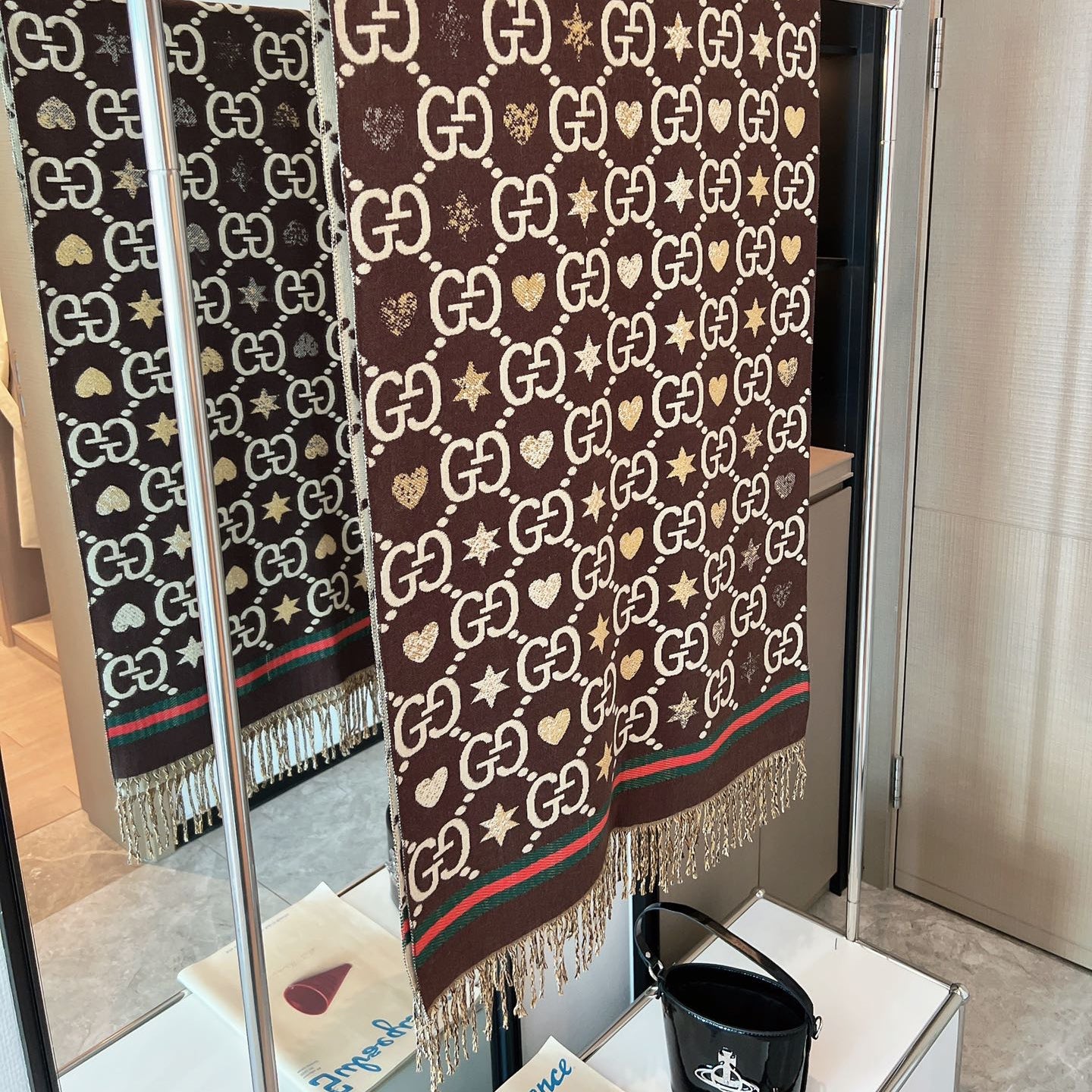 Reversible Cashmere Jacquard Fringe Scarf Shawl