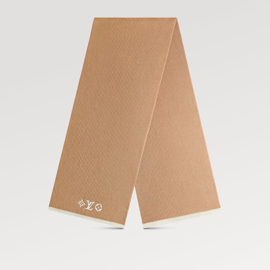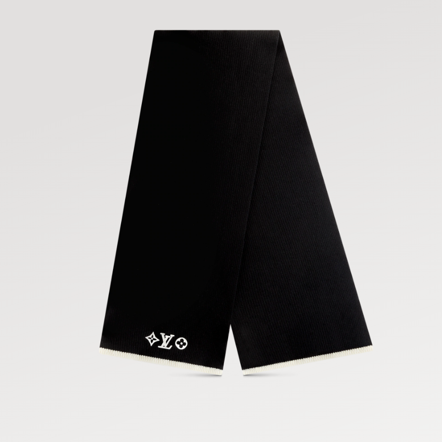 - The ?Headline scarf is a celebration of House craftsmanship with its luxuriously soft knit and meticulous detailing. The Monogram Flowers signature is embroidered at opposite corners of the piece. alongside contrasting edges. The pure wool winter accessory is a casual and elegant option for cold-weather dressing.