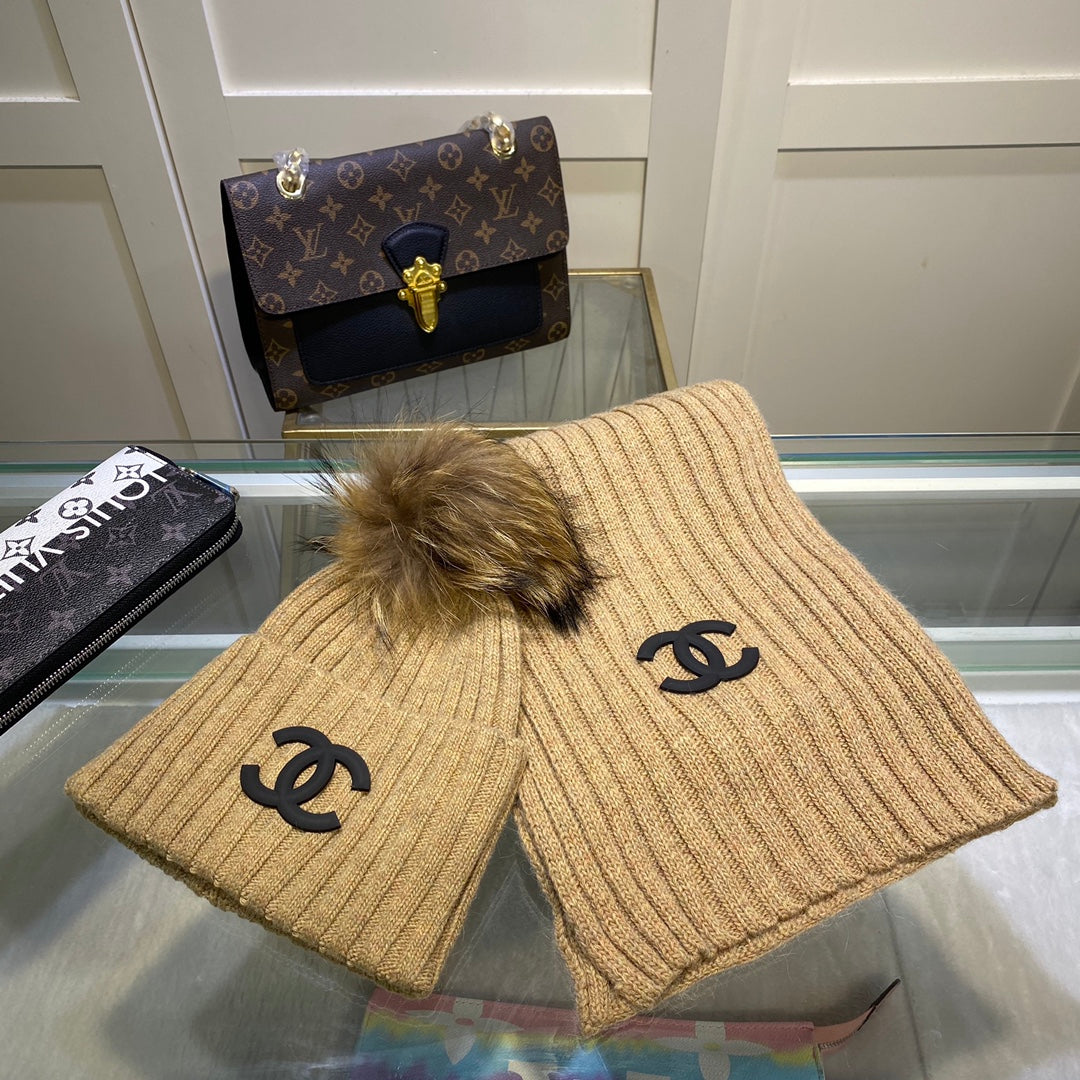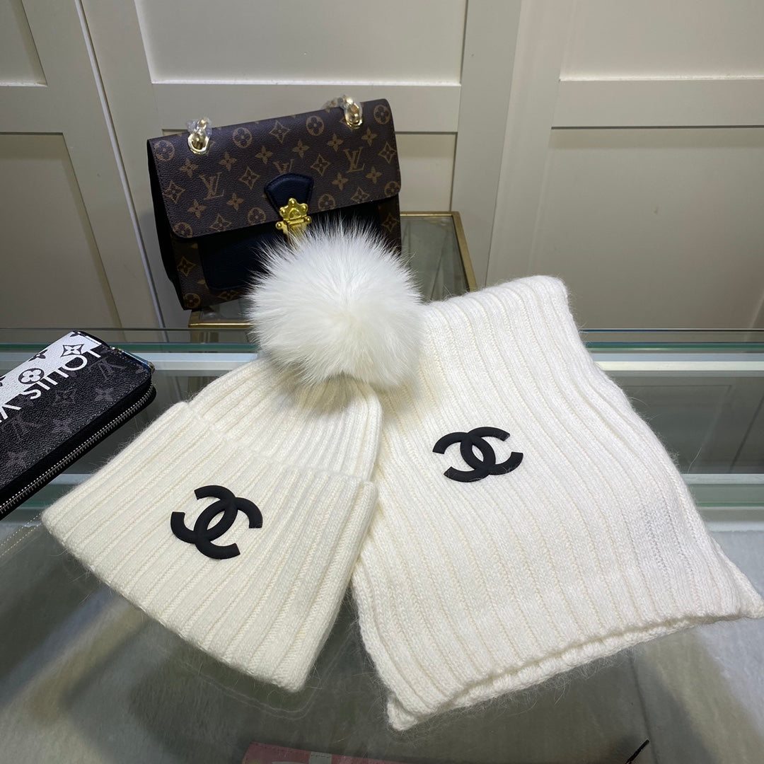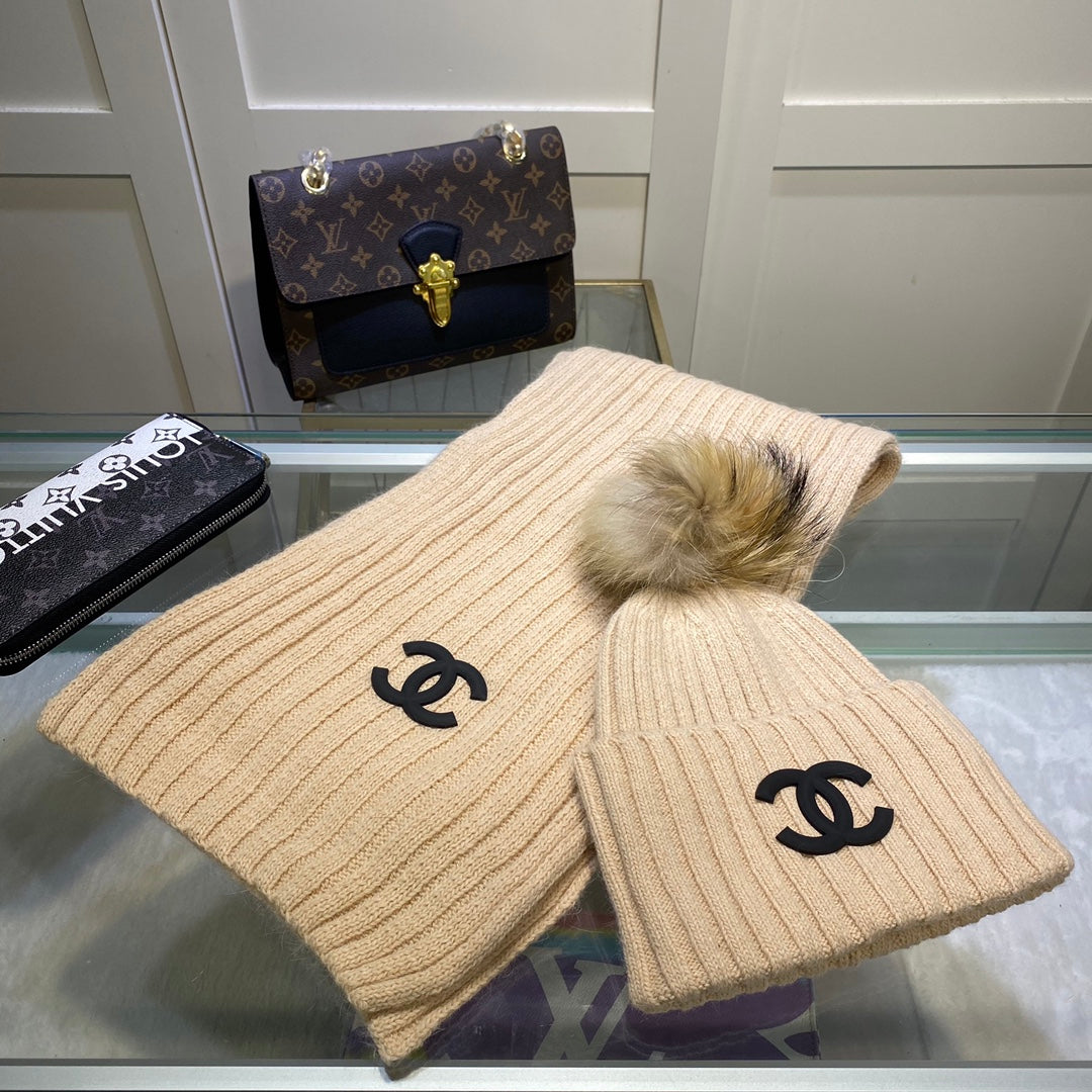 Temperament Knitted Vertical Scarf Hat Set